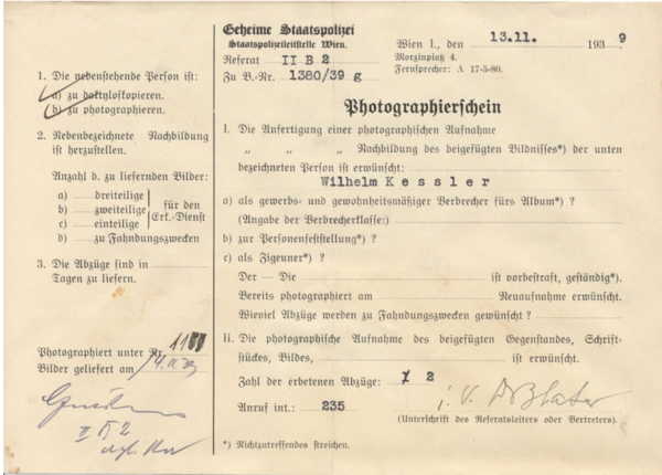 Wilhelm Kessler war Schriftsetzer in Tulln und gehörte zur Gruppe der Zeugen Jehovas in Tulln. Er wurde am 18. Oktober 1939 als Bibelforscher verhaftet.